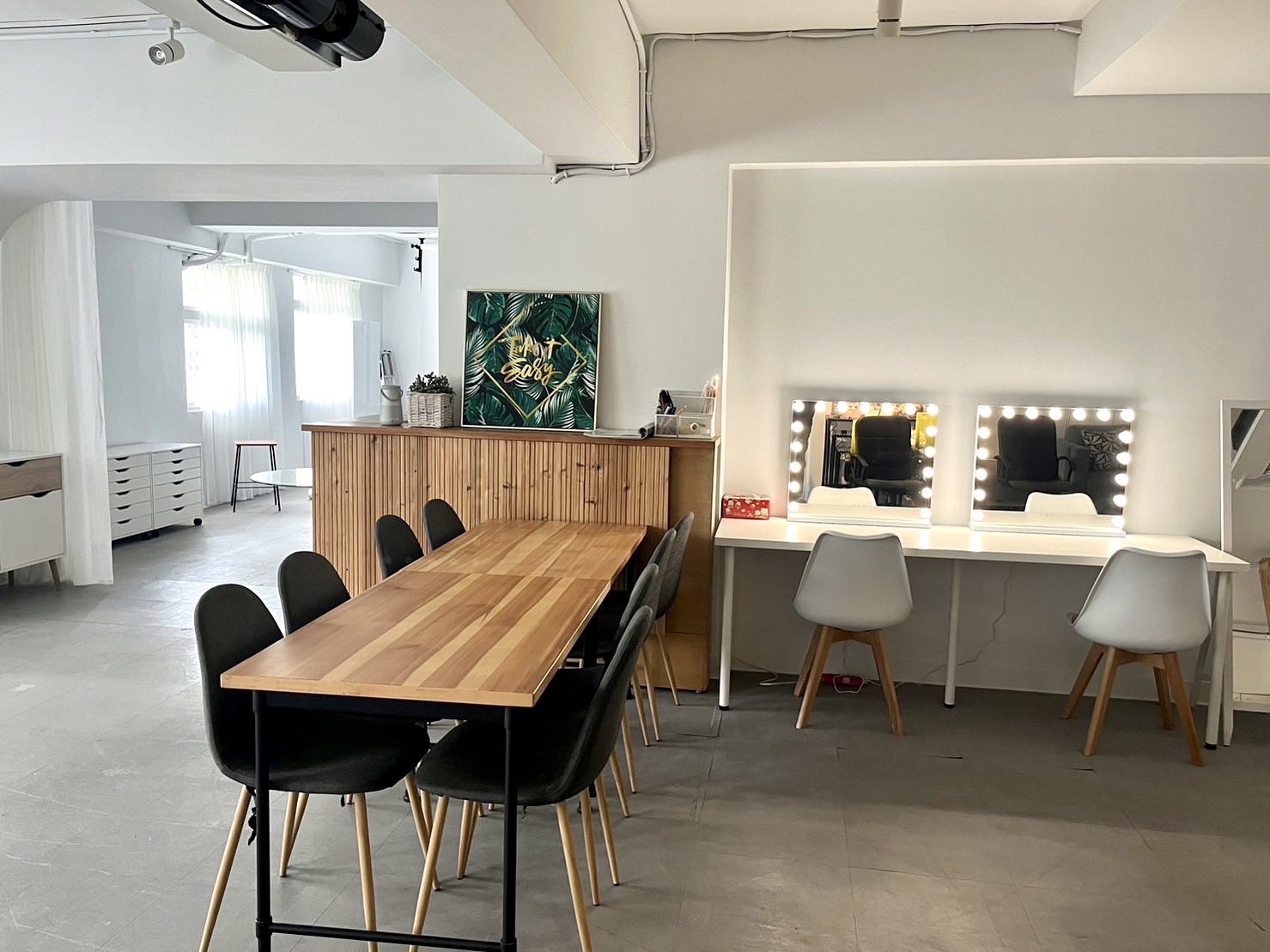 近新北新莊 棒球場 米洛克攝影棚位於新北棒球場旁 ❤️好停車🅿️ 棒球場停車場 💗有電梯🛗 沒有很大🤣 此棚自由陳設好變化 不管 居家客廳 『電視櫃、沙發、書櫃、吧台』 居家臥室 『單人床、單人沙發』 簡易工作室 『辦公桌、白板、辦公用具』 素背景『多色素牆、多色背景紙』 全棚為一個大空間 僅開放一組人租借 —————————————————– 費用說明 NT$1,000/1hr 『最少四小時起租』 無計算人頭費 垃圾自行帶走『需我方處理則收NT$500清潔費』 110V供電不另行收費 220V 供電(自行拉電箱)收費NT$2,000/1班(8hr內) 位置:新北市新莊公園路『棒球場旁』